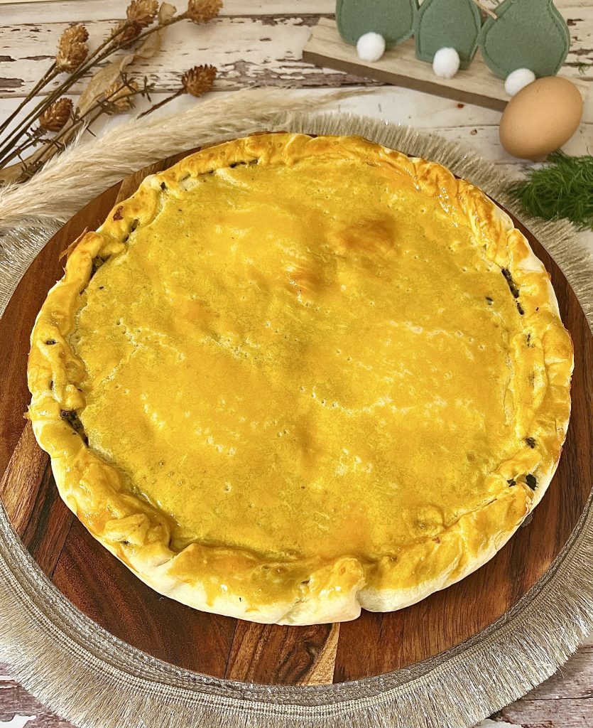 Es una tarta salada a base de acelgas o espinacas, ricotta y huevos envuelta en una pasta brisée crujiente.
