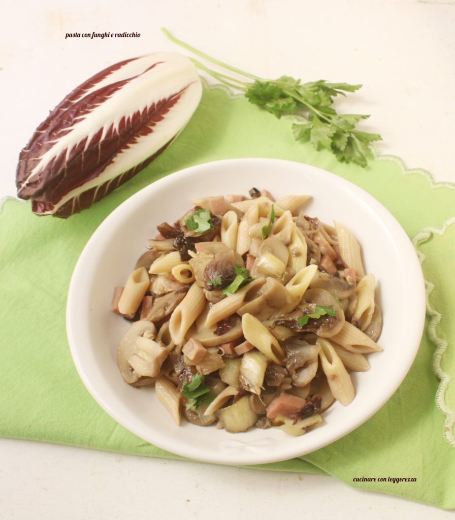 La pasta con champiñones y radicchio es un primer plato típico otoñal 🙂