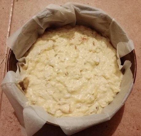 Continuar moviendo con la espátula y verter la mezcla en un molde cubierto con papel de horno.