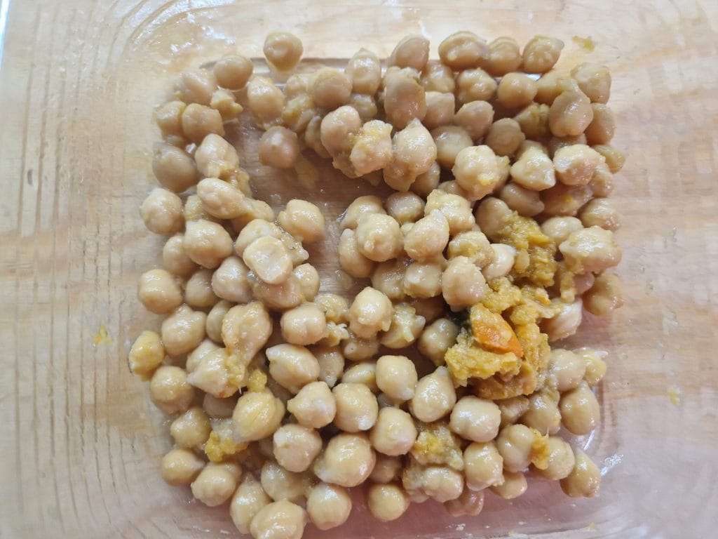 - 250 g garbanzos cocidos, hervidos (escurridos también en lata)
