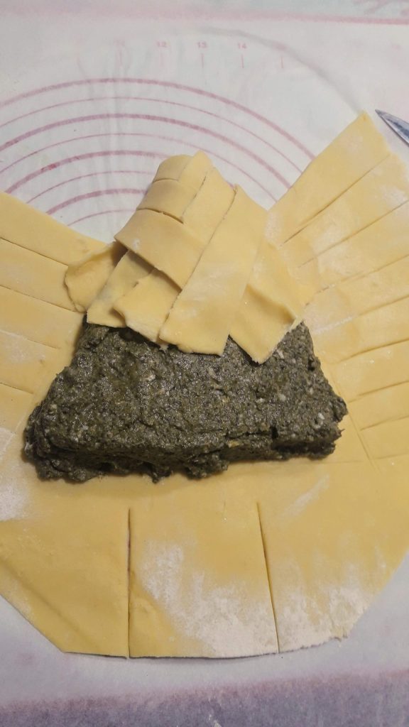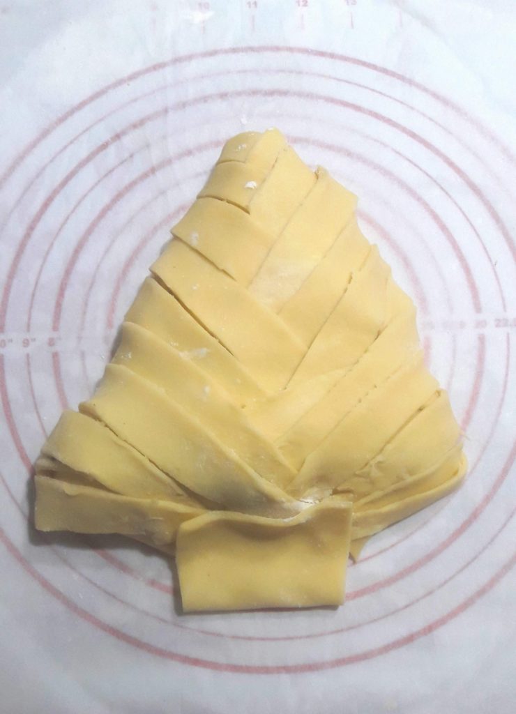 He comenzado a doblar las tiras de masa empezando por la punta, y luego cruzándolas entre sí.