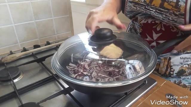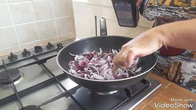 Posteriormente, corta la cebolla y colócala en un sartén antiadherente con un poco de aceite de oliva, azúcar o edulcorante, vinagre, ajusta de sal y añade medio vaso de agua.