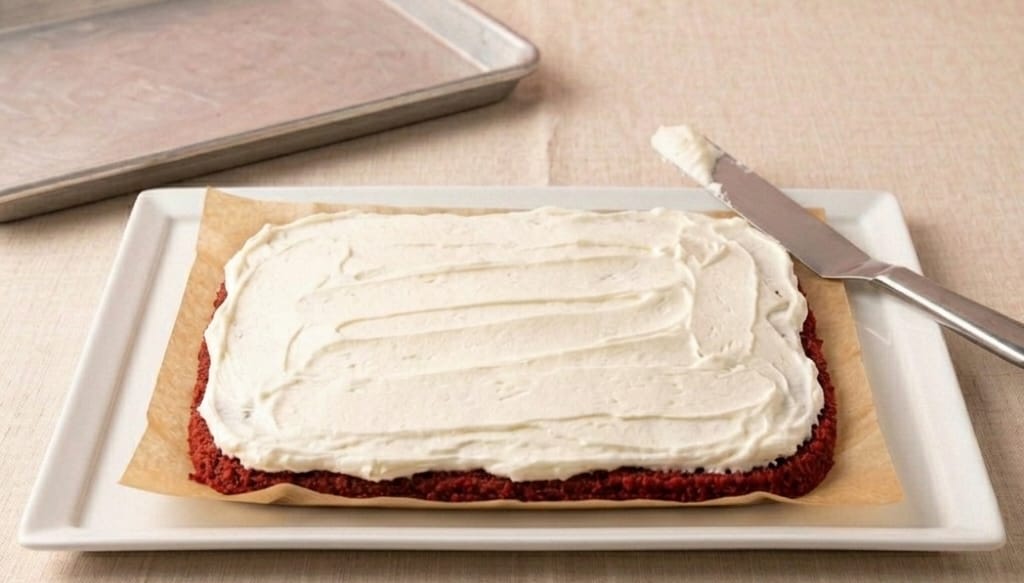 Pasos Brazo de gitano Red Velvet con crema y fresas