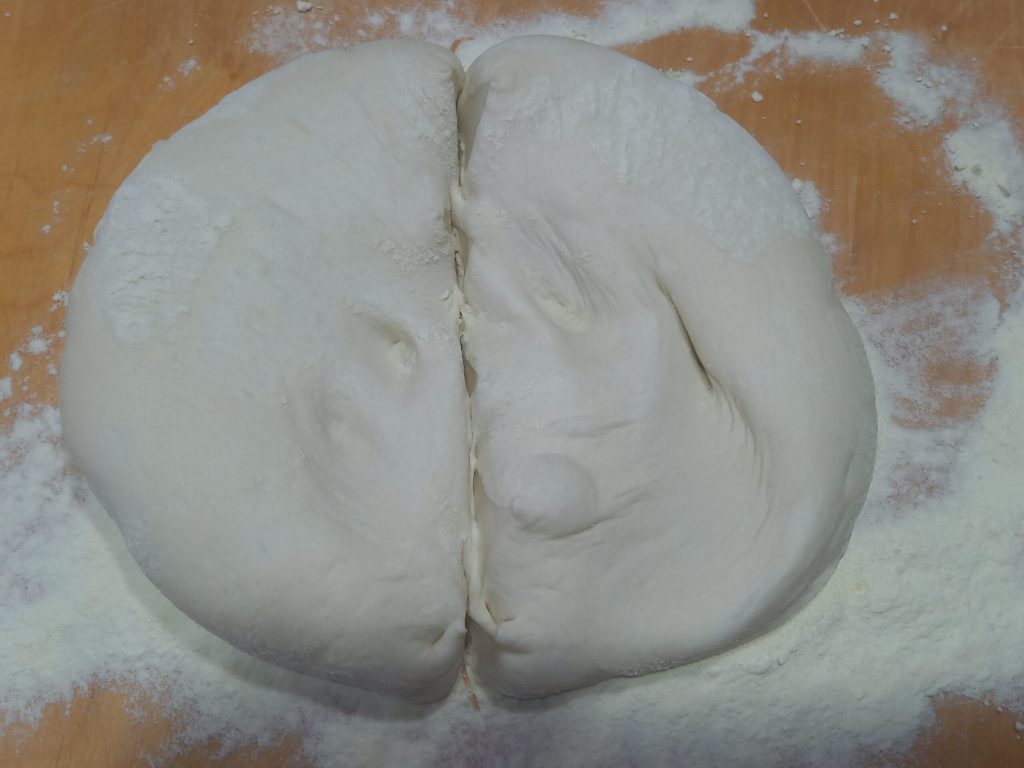 • Cuando haya pasado el tiempo de fermentación, divide en 2 partes.