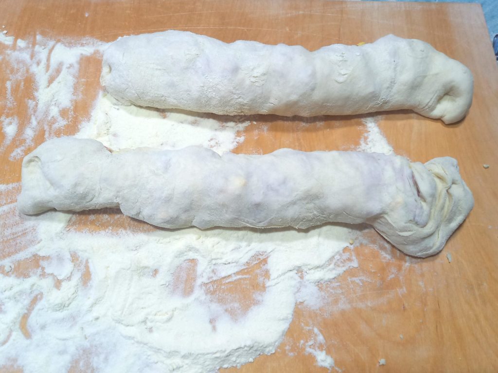 • y luego enróllalo bien apretado, cerrando siempre los extremos sellándolos con los dedos. Prepara una bandeja con papel de horno.