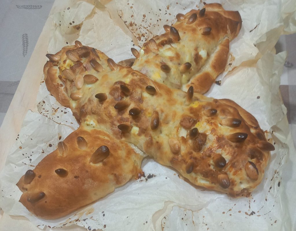 Deliciosa esta colomba ideal para quienes no gustan de lo dulce, en lugar de tener la forma clásica del tortano, os la presento con la forma del símbolo de la Pascua por excelencia