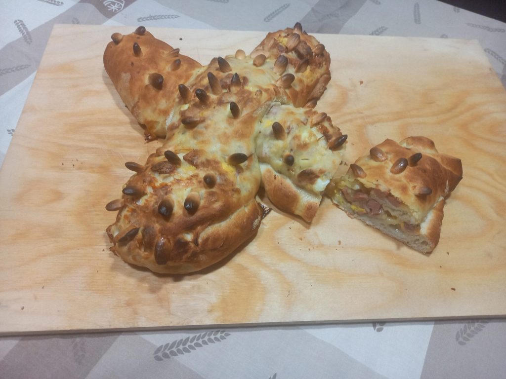 Colomba salada rellena. Se puede conservar cubierta hasta 3 días como cualquier focaccia.