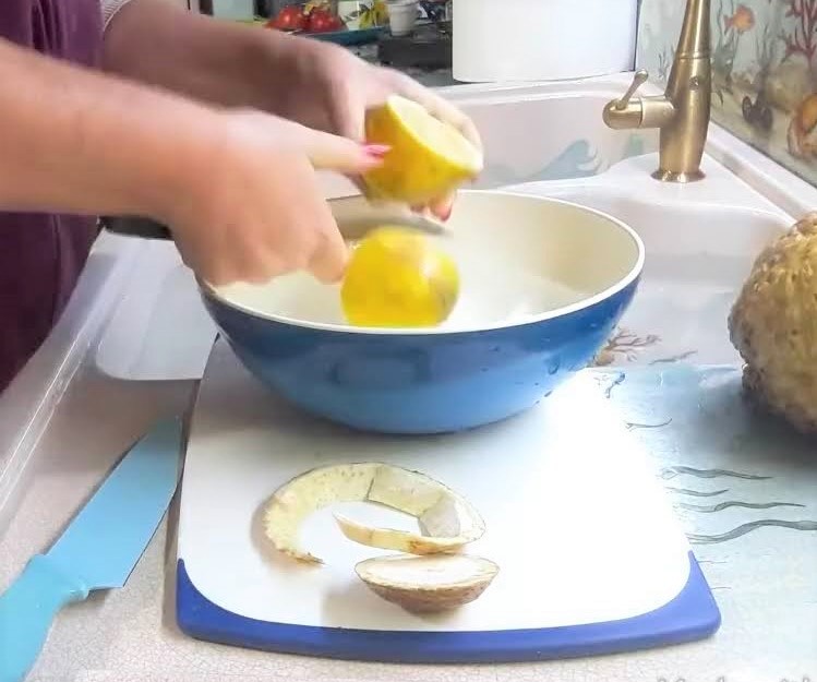 Pon todas las rodajas en un bol con agua y limón, para que no se oscurezca.