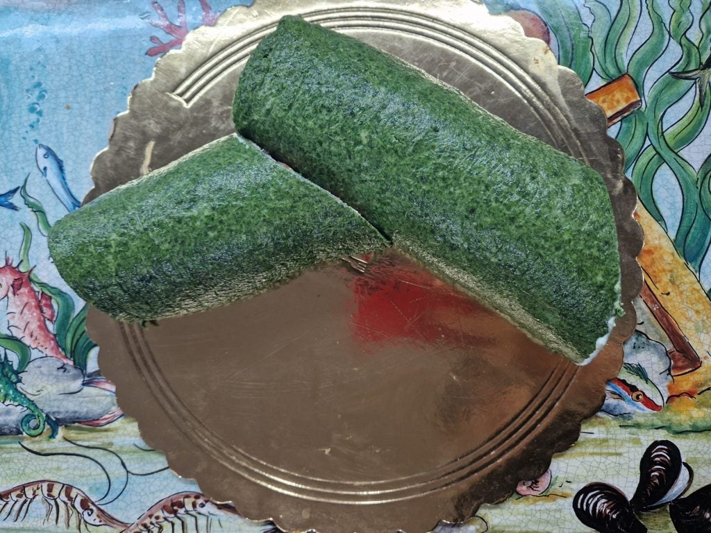 Toma una bandeja y coloca el corte obtenido al lado del resto del tronco y pasamos a las decoraciones.