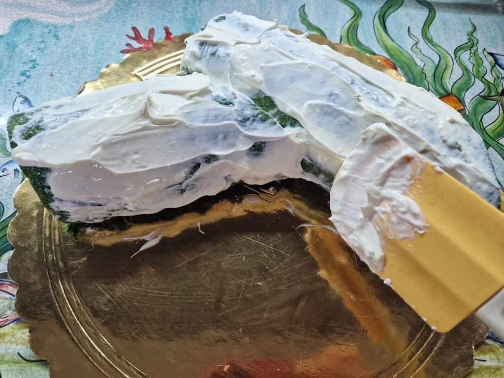 Unta la crema de queso a lo largo de todo el tronco, incluso de manera irregular,