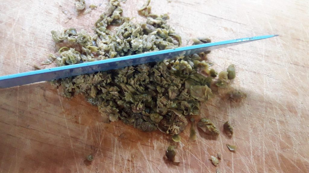 Añade el yogur con las alcaparras y la pimienta y mezcla.
