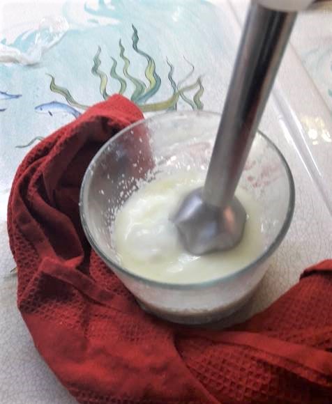 • Córtala en trozos y colócala en un bol de cristal, añade 150 ml de leche, cubre con el film y….
