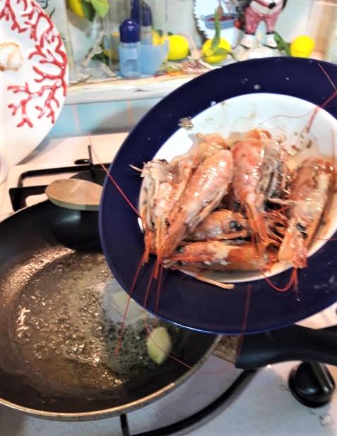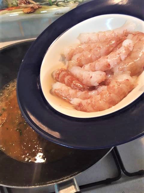 • Pon el agua para la pasta al fuego y retira los langostinos de la salsa que preparaste antes……
