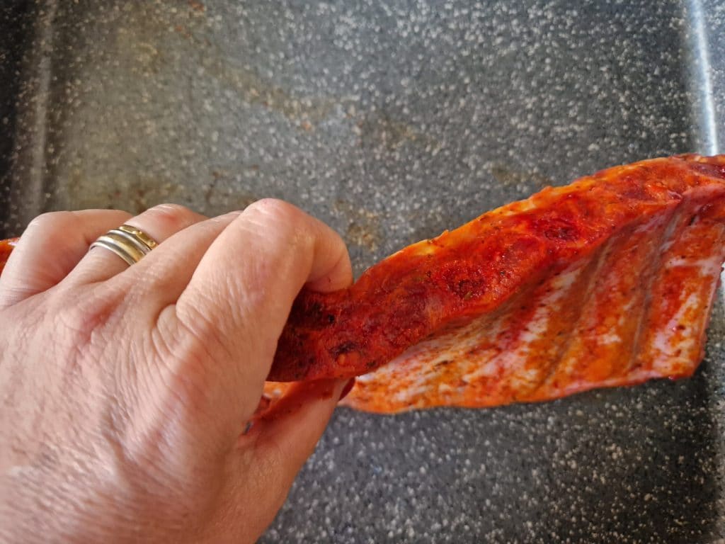 Para una cocción más rápida, en freidora de aire, corta las costillas una por una y así puedes cocinarlas solo 30 minutos siempre a 180ºC girándolas a mitad de cocción.