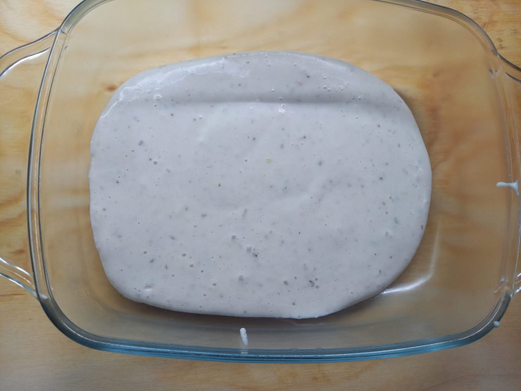 Vierte un poco de bechamel y continúa así hasta que hayas terminado todos los ingredientes.