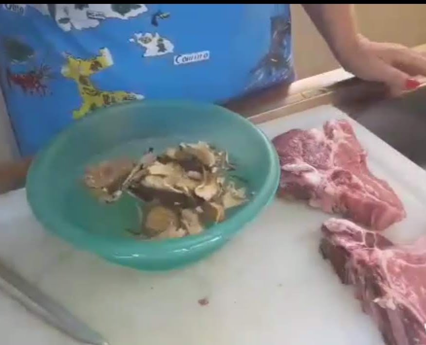 • Después de haberla cocido 5 minutos por un lado y 5 por el otro, añade las setas porcini, con la mitad de su agua de remojo.