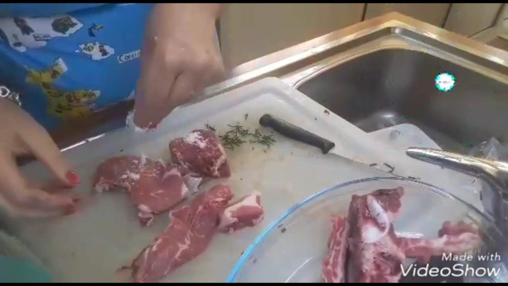 • Condimenta la carne con sal, pimienta, salvia y romero,