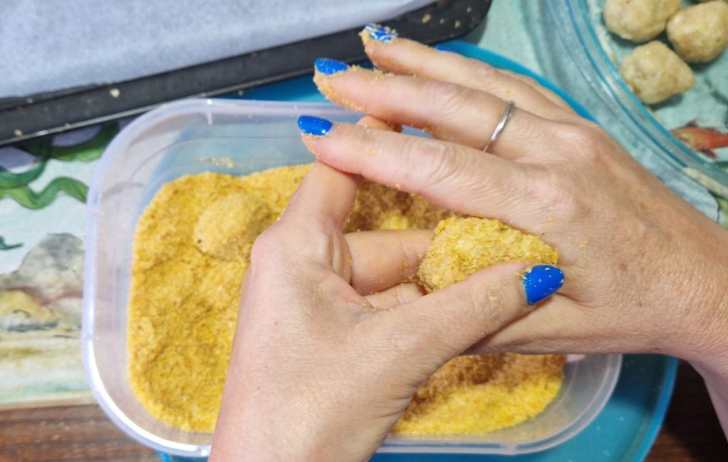 Transfiere la mezcla a un tazón, amasa y forma bolas del tamaño de 2 cm de diámetro.