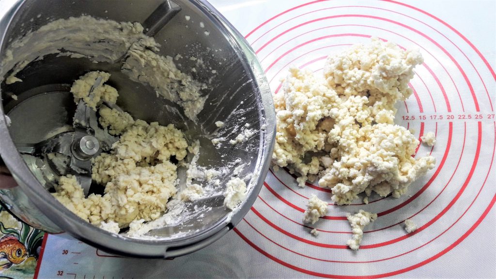 Añade a esta mezcla el resto de la pasta brisè que has amasado antes, y mezcla en el robot durante otros 20 segundos aproximadamente. Con el Bimby vel 4