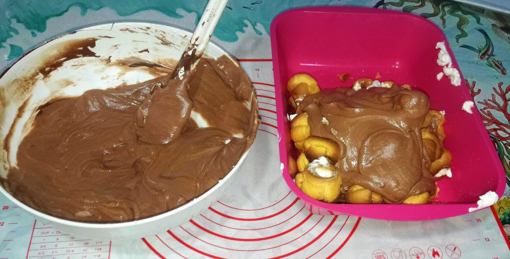 • Echen dentro los profiteroles y con las manos mezclen todo delicadamente