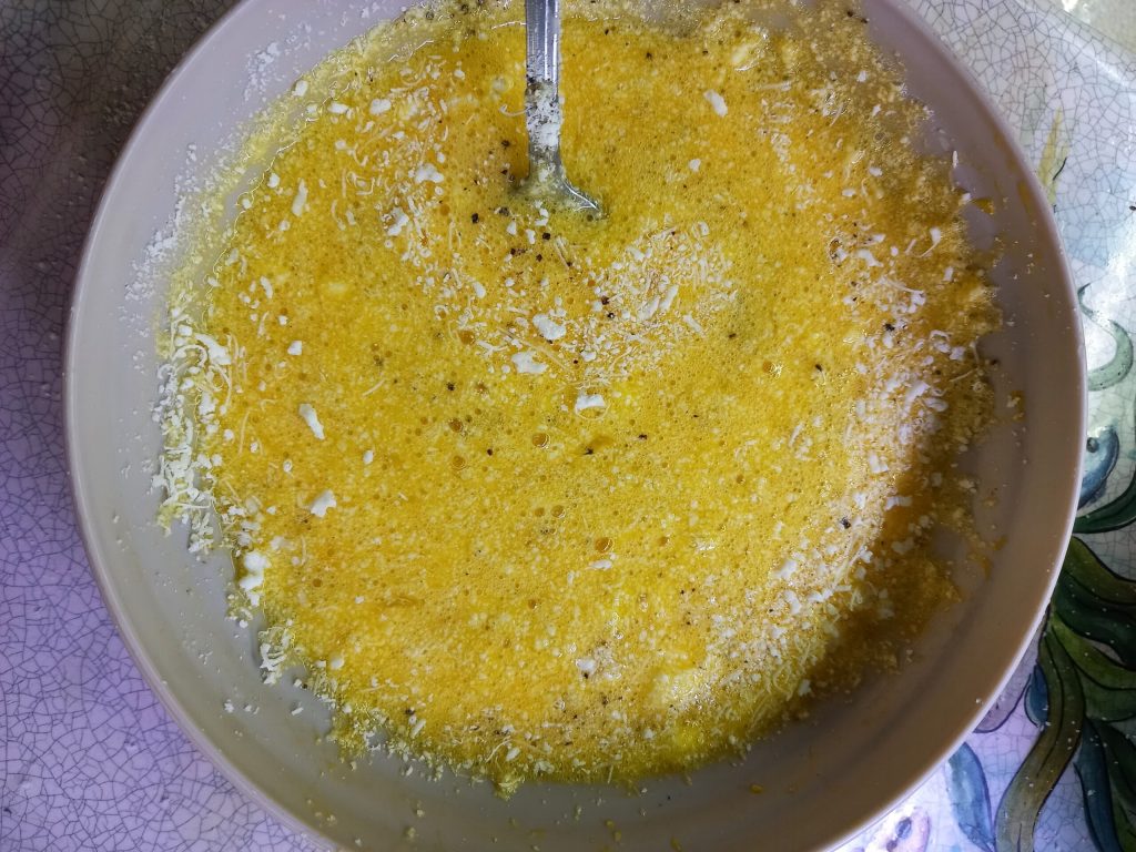 • Mezcla las yemas con 3/4 del pecorino y pimienta. Añade 1 cucharada de agua de cocción de la pasta para evitar el efecto tortilla, y mezcla vigorosamente con un batidor. La crema debe ser suave, densa y aterciopelada.