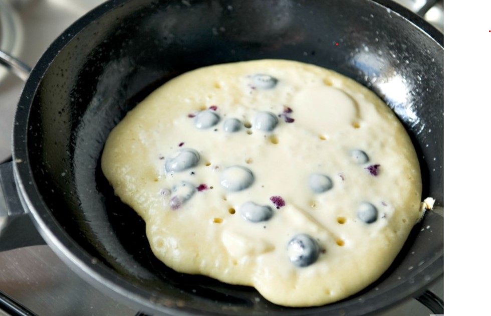 Después de que aparezcan las burbujas, dorar por el otro lado y servir con mantequilla y jarabe de arándanos o nutella.