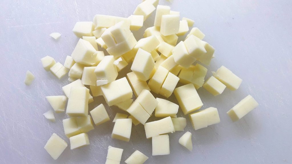Corta el queso en cubos.