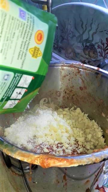 Pon una tapa antisalpicaduras, baja el fuego y deja cocinar por 1 hora. Mientras tanto puedes hacer los tallarines caseros.