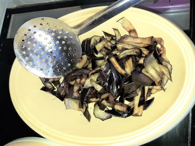 Además de las rodajas tendrás recortes, fríelos aparte, los usaremos para enriquecer el relleno.