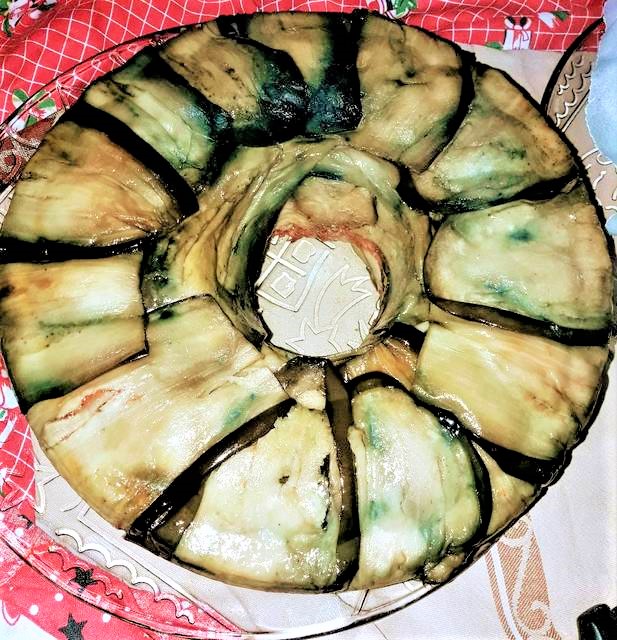 Aquí está listo el Rosco de berenjenas, tallarines y salchicha