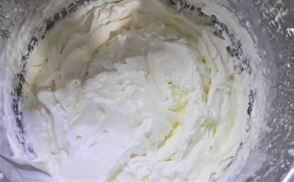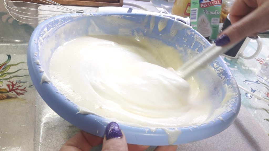 Agrégalas una a una a la nata, con un movimiento lento de arriba a abajo.