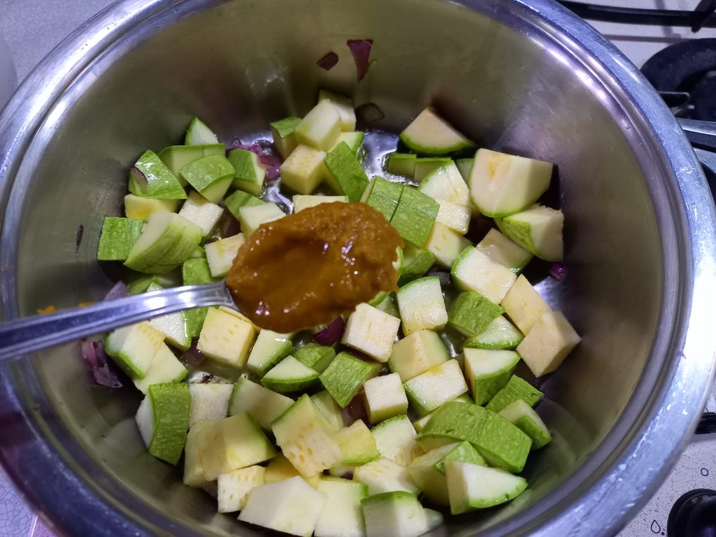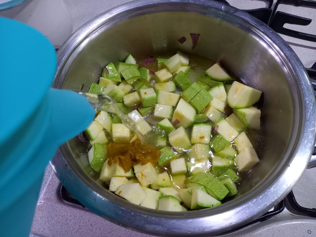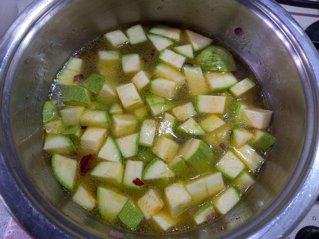 • luego agrega los calabacines en cubitos, el caldo vegetal.