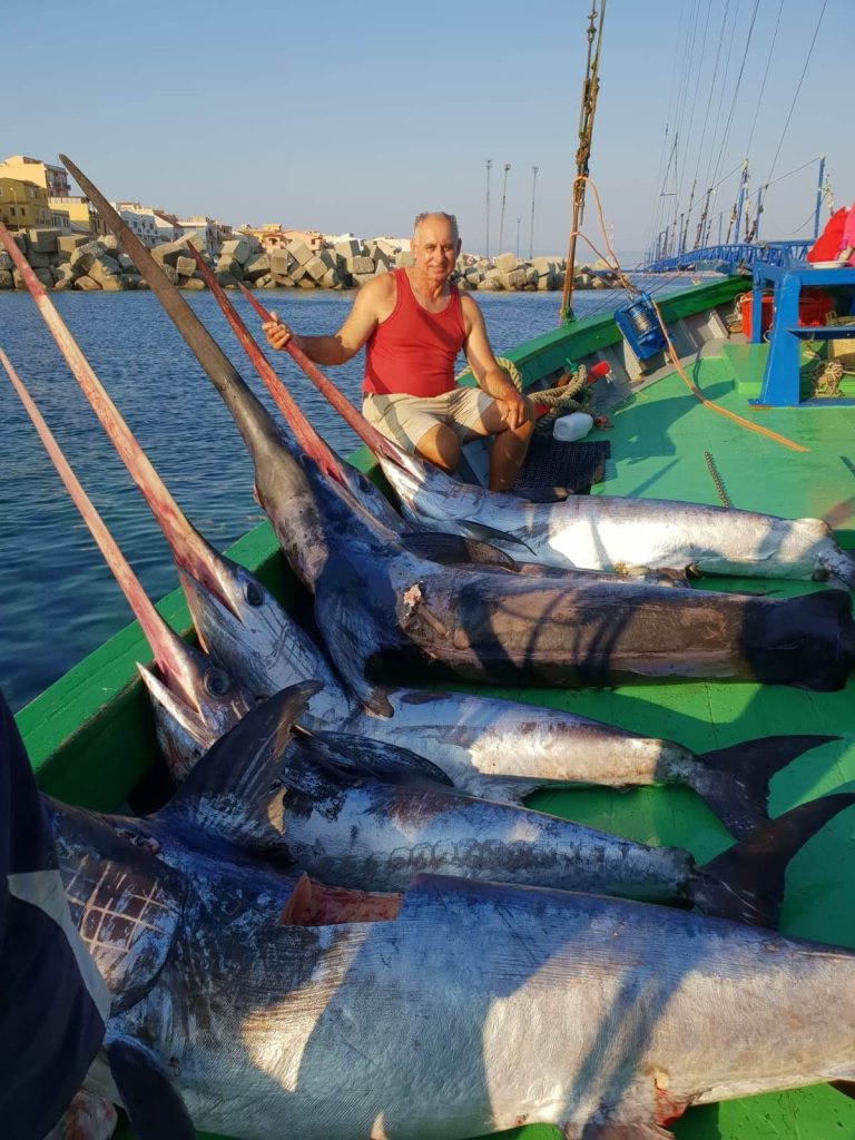 El pez espada del Estrecho de Mesina lo pescamos con las características barcas llamadas «feluchas», provistas de un puente y de una antena desde donde se avista el pez.