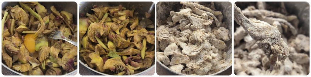 Primero, limpia las alcachofas, quita las hojas más duras y con un cuchillo afilado, comienza a cortar alrededor como si pelaras una manzana, pela el tallo y luego frota medio limón en toda la alcachofa para que no se ponga negra. Una vez que estén todas limpias, córtalas por la mitad y luego en rodajas. Colócalas en un cuenco espacioso, añade los huevos y mezcla bien, debes hacer que los huevos se mezclen bien. En este punto, comienza a agregar la harina mientras mezclas hasta que estén bien cubiertas. Calienta bien el aceite y, cuando esté listo, comienza a freír algunas alcachofas a la vez. Escúrrelas sobre papel absorbente, ajusta la sal y disfrútalas.