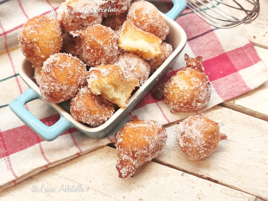 Una vez lista la pasta, calienta bien el aceite, la temperatura debe estar entre 160/170 grados. Con la ayuda de dos cucharaditas, introduce pequeñas porciones de masa en el aceite bien caliente, gíralas y deja que se cocinen. Escúrrelas sobre papel absorbente y luego rebózalas en azúcar. ¡Buen puff puff!