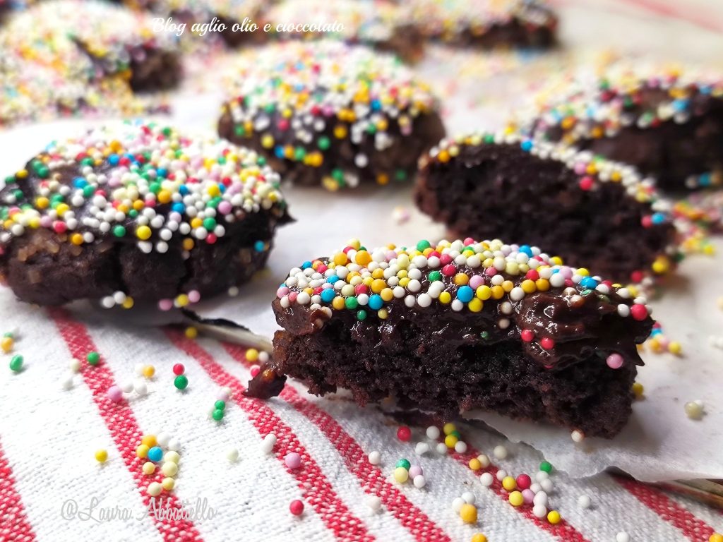 Mientras tanto, prepara la ganache, puedes seguir siempre esta receta. Cuando las galletas estén frías, úntales la ganache y cúbrelas con los azúcares de colores. En este punto, no te queda más que probar estas delicias