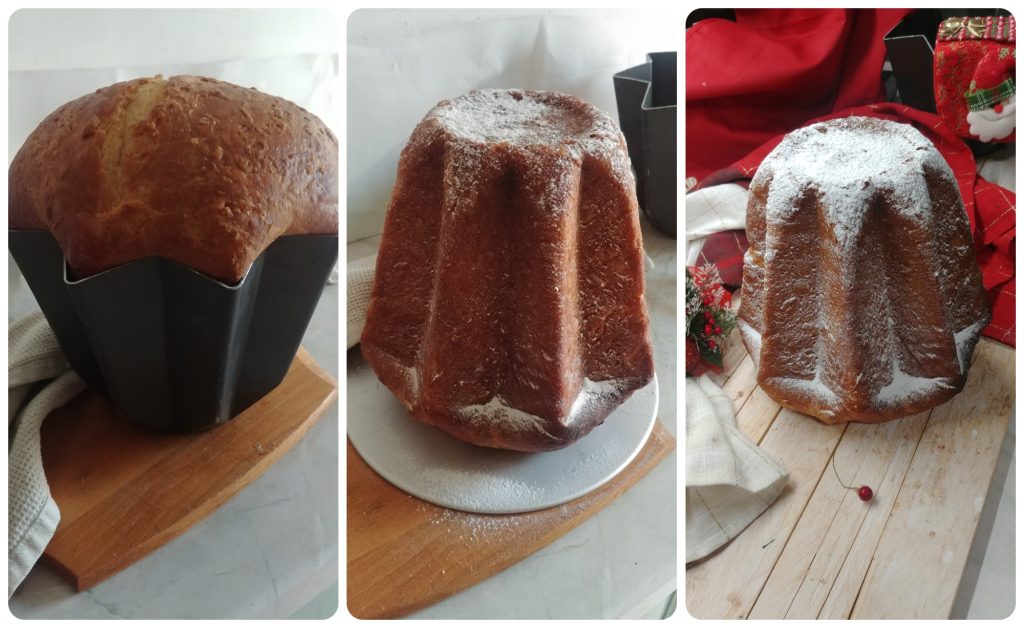 SEGUNDO AMASADO: Agrega al primer amasado un huevo, un poco de azúcar y un poco de harina, enciende la máquina y cuando el primer huevo esté bien absorbido, agrega el segundo huevo seguido de un poco de azúcar, un poco de harina y las semillas de la vaina de vainilla. Cuando el segundo huevo esté bien absorbido, añade la yema con el resto del azúcar, un poco de harina y la sal, pon en marcha la máquina y continúa agregando más harina y finalmente la mantequilla blanda en trozos. Trabaja bien la masa al menos 10 minutos luego transfiere la masa a la superficie de trabajo, amásala un poco con las manos, forma una bola lisa y colócala en el molde de pandoro engrasado. Cúbrela y deja que fermente hasta que llegue al borde del molde. Una vez listo, hornéalo a 180 grados durante unos 35/40 minutos. Yo usé el horno estático pero ajústate con el tuyo. Después de los primeros 15 minutos, cubre la superficie con un papel de aluminio para evitar que se oscurezca demasiado. Desmolda el pandoro y déjalo enfriar en el molde luego dale la vuelta y espolvoréalo con abundante azúcar glas.