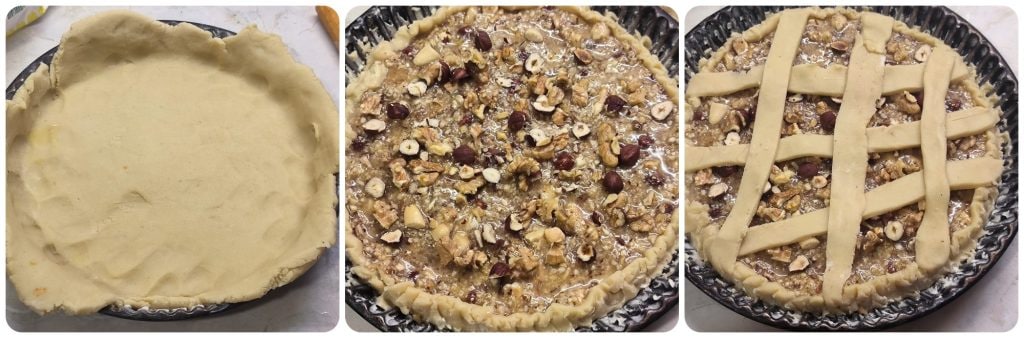Tarta con masa quebrada de mantequilla y frutos secos y es una fiesta inmediata, un dulce con éxito asegurado, simple y delicioso