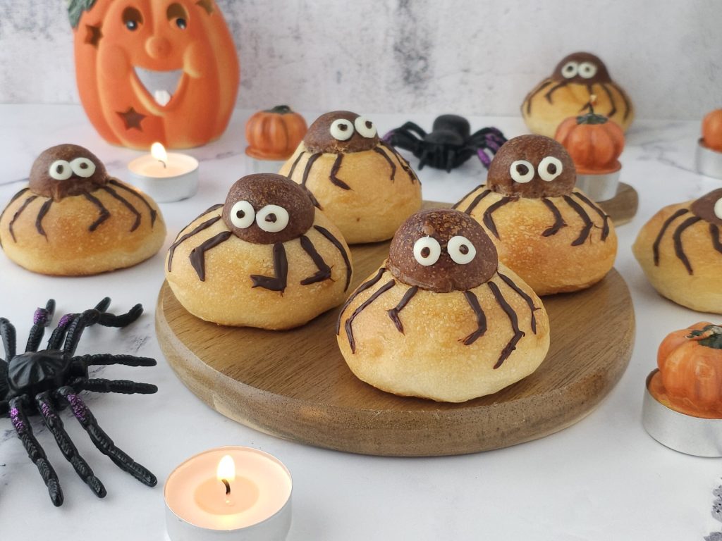 • Una vez listas las brioche, será necesario decorarlas para crear las arañitas. Derretir al baño maría tanto el chocolate negro como el blanco. Con el chocolate blanco crear los ojitos haciendo pequeñas gotas blancas sobre papel de horno, dejar enfriar en el congelador y luego formar las pupilas con el chocolate negro y dejar secar. Mientras tanto, dibujar las patas utilizando siempre el palillo y utilizando el chocolate negro sobre la masa blanca. Finalmente, pegar los ojos sobre la masa oscura utilizando una gota de chocolate fundido. Os aseguro que es más fácil hacerlo que explicarlo, luego dejad volar vuestra imaginación. Espero que os guste mi última receta, hasta la próxima amigos.