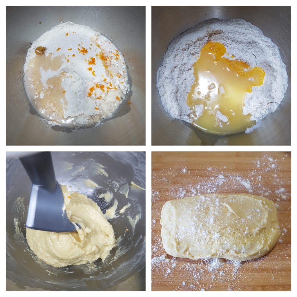 Para preparar estas deliciosas brioche rellenas de pistacho necesitamos hacer primero la masa brioche. Yo he utilizado la amasadora, pero si queréis, podéis amasar todo a mano en un bol grande y luego en la mesa de trabajo. En el bol de la amasadora añadir la harina tamizada, la vainilla, la ralladura de cáscara de naranja, la levadura de cerveza disuelta en dos dedos de leche y el azúcar granulada, y amasar durante unos minutos a velocidad 1-2 usando el gancho de amasar. A continuación, añadir el huevo y dejar amasar un poco más. Luego, añadir el resto de la leche poco a poco y seguir amasando. Agregar también la sal. Finalmente, agregar poco a poco la mantequilla blanda cortada en trozos, dejar que se absorba bien y continuar amasando. Para obtener una masa lisa y homogénea se necesitarán en total al menos 15-18 minutos o hasta que la masa esté bien ligada. Dejar que la masa fermente en un bol grande cubierto con film transparente durante aproximadamente 2-3 horas en el horno con la luz encendida.