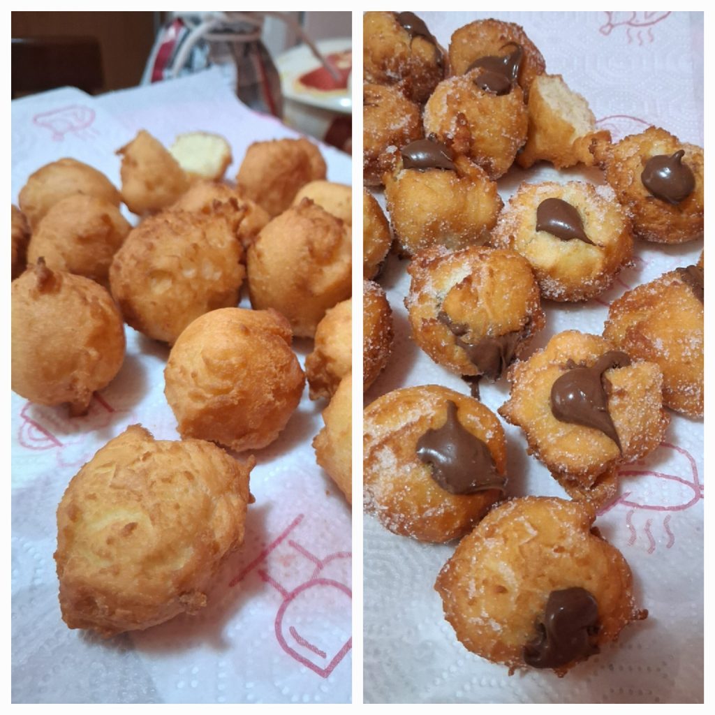 • Cuando estén calientes, perfora los buñuelos y rellénalos con una jeringa o manga pastelera llena de nutella, luego pásalos por el azúcar granulada y sírvelos calientes.