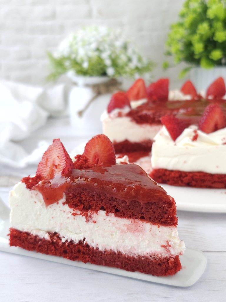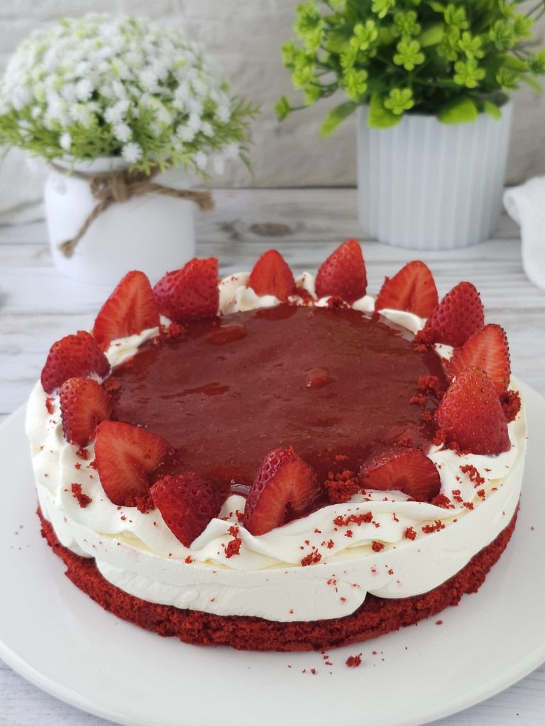 Hola amigos, hoy os propongo esta deliciosa cheesecake de terciopelo rojo para hacer en cualquier ocasión, pero sobre todo en verano para deleitar y refrescar a amigos y familiares. La versión cheesecake del famoso pastel de terciopelo rojo, realmente muy fácil de hacer, y si no se encuentran fresas para la decoración, basta con usar frambuesas o frutos del bosque. A continuación encontraréis la receta.