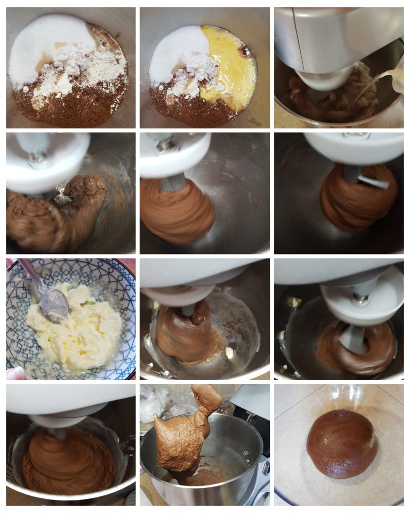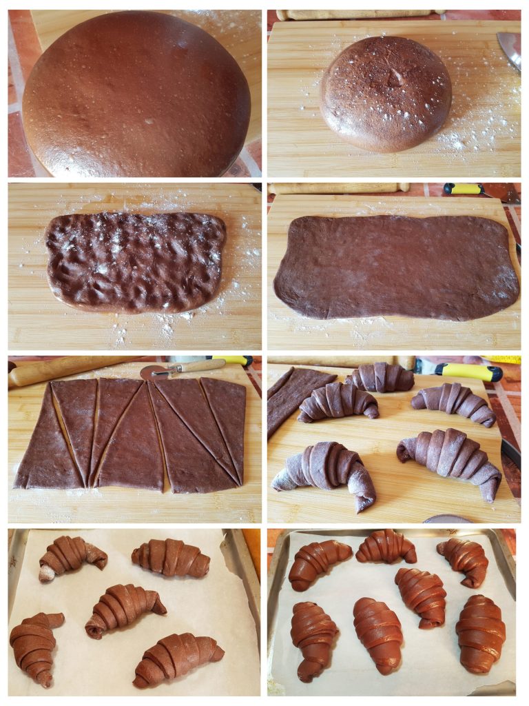 Pasos para la preparación de los cruasanes brioche al cacao rellenos de nutella