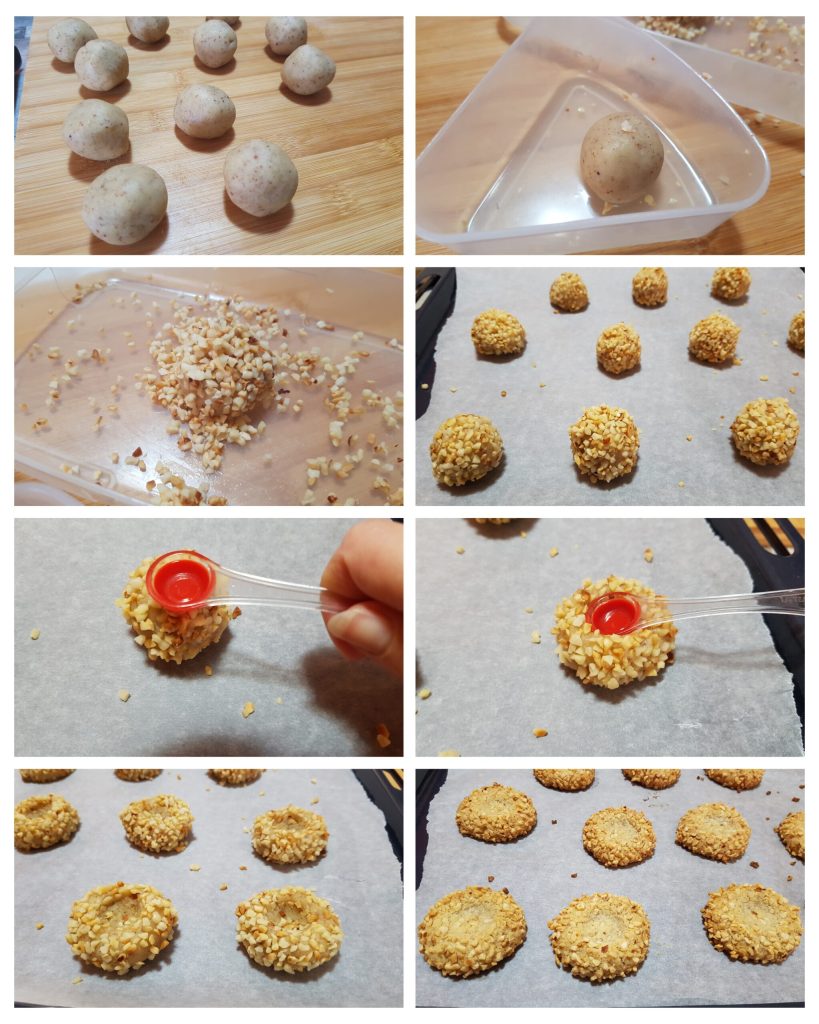 Pasos para las galletas con huella de avellana, hazelnut thumbprint cookies
