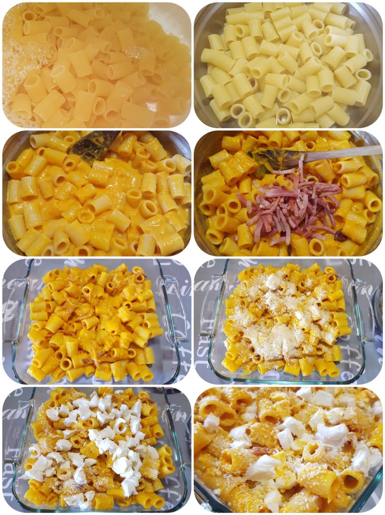 Pasos para la pasta al horno con calabaza speck y mozzarella