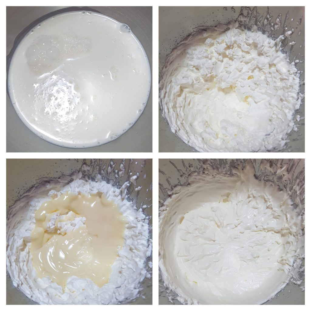 Para realizar este semifrío solo se necesitan 5 minutos. En un cuenco bien frío previamente colocado en el congelador durante 30 minutos, batir con una batidora eléctrica la nata fresca líquida. Montar la nata bien firme y añadir en hilo la leche condensada fría de la nevera y batir durante unos minutos más.