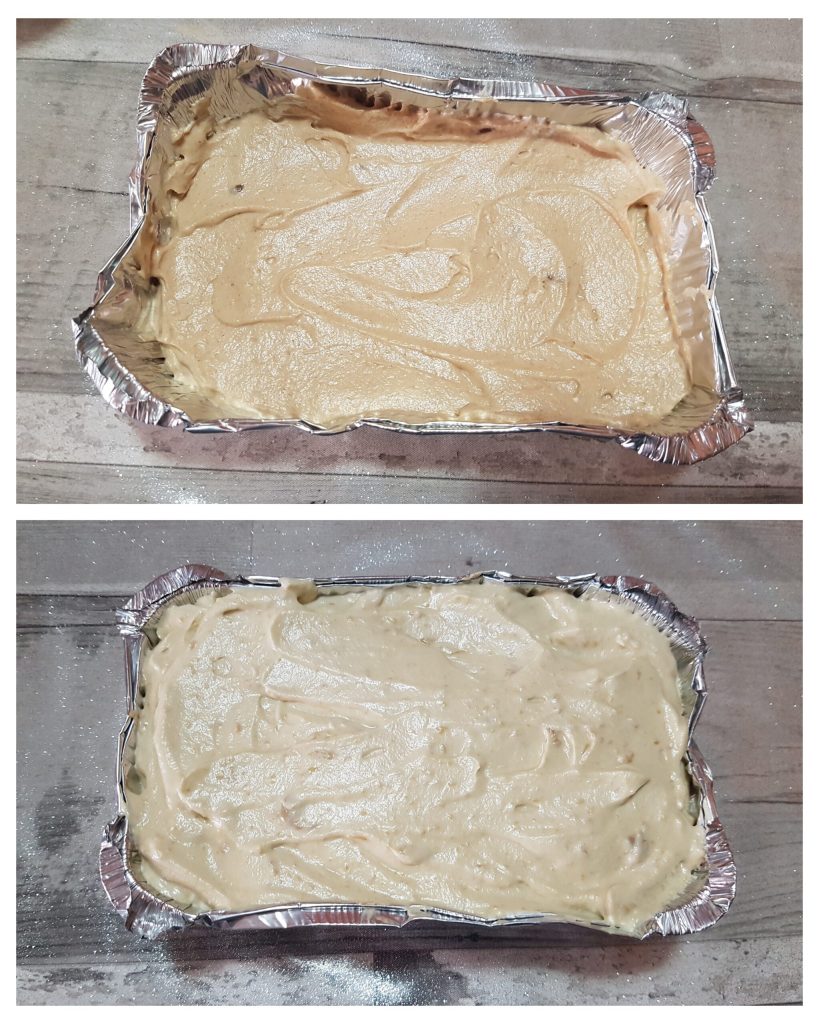 Tomar un molde de plumcake desechable o, si usas el molde de plumcake tradicional, simplemente fórralo con papel film previamente. Verter la primera mezcla de avellana en el molde y nivelar bien. Colocar en el congelador durante 20 minutos. Retirar el molde y luego verter la mezcla de pistacho. Colocar en el congelador durante 5 horas o durante toda la noche.