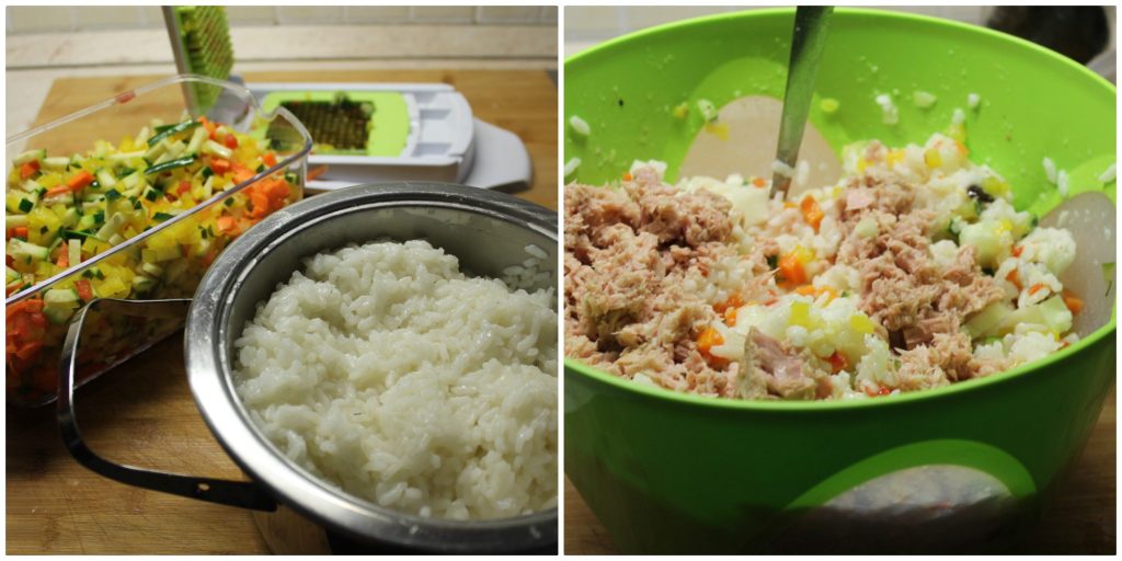 Para preparar la ensalada de arroz, se empieza cociendo el arroz en agua hirviendo con sal. Una vez cocido, el arroz se escurre y se enfría. Posteriormente, se añaden otros ingredientes como verduras frescas en cubitos (como tomates, pepinos, pimientos, maíz, zanahorias, cebolla), atún, huevos duros, aceitunas y queso. Los ingredientes pueden variar según la receta o la preferencia personal.