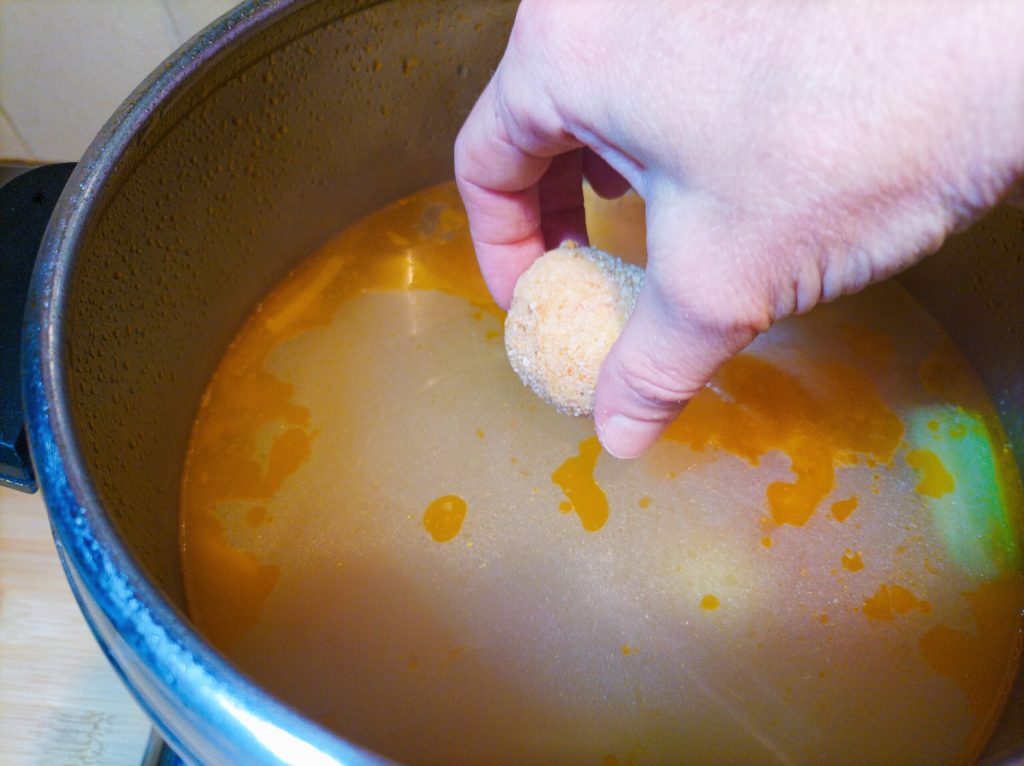 Al terminar la cocción, coge las albóndigas y ponlas una a una en el caldo.