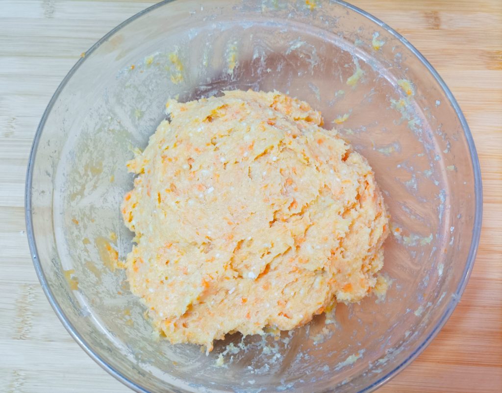 Pasa la mezcla a un recipiente y añade el parmesano y una pizca de sal.